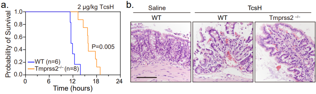 圖5. 小鼠模型顯示TMPRSS2 是TcsH重要的病理相關(guān)受體