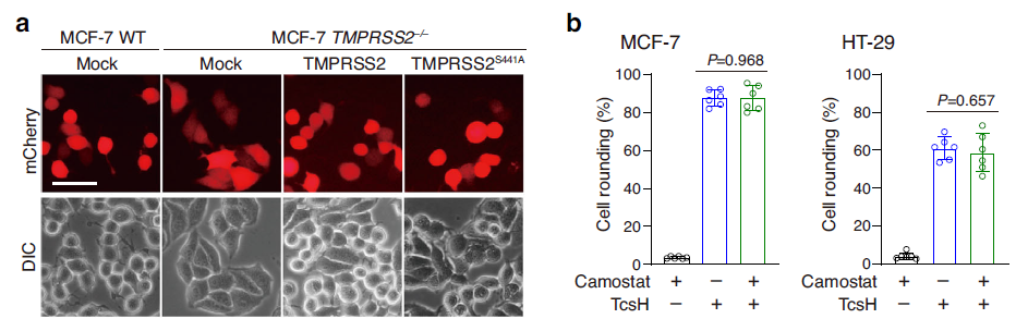 圖2. TMPRSS2 的絲氨酸蛋白酶活性缺失不影響介導(dǎo)TcsH入侵